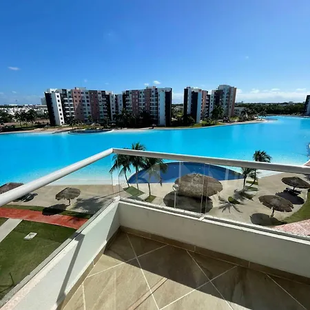 Apartamento dispõe de quartos com varanda, máquinas de café/chá e TV de tela plana com canais via satélite, bem como cozinha totalmente equipada. A propriedade também tem 1 casas de banho. O apartamento Increible Laguna Artificial Y 7 Albercas Apartamento tem 1 camas.